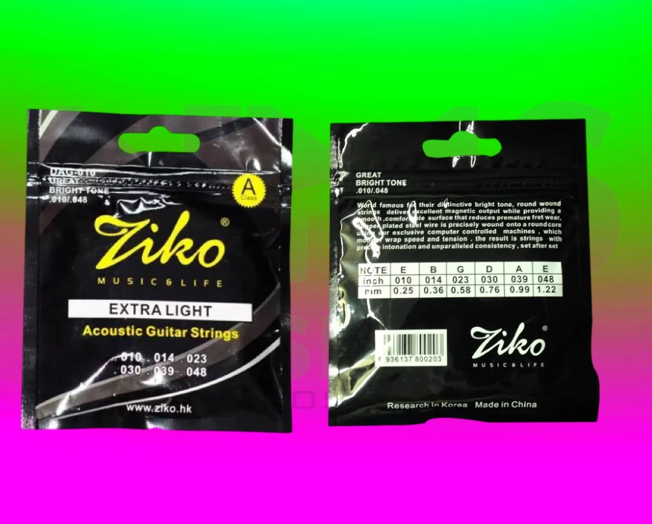 Ziko Acoustic Guitar Strings offer bright tone, durability, and smooth playability for a rich acoustic sound.