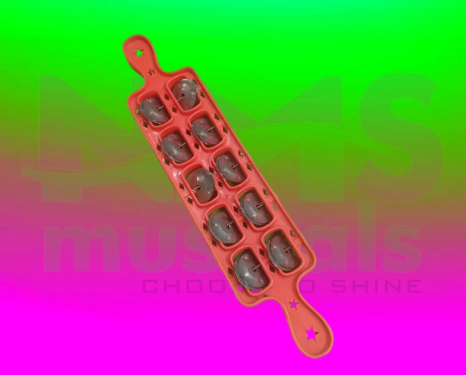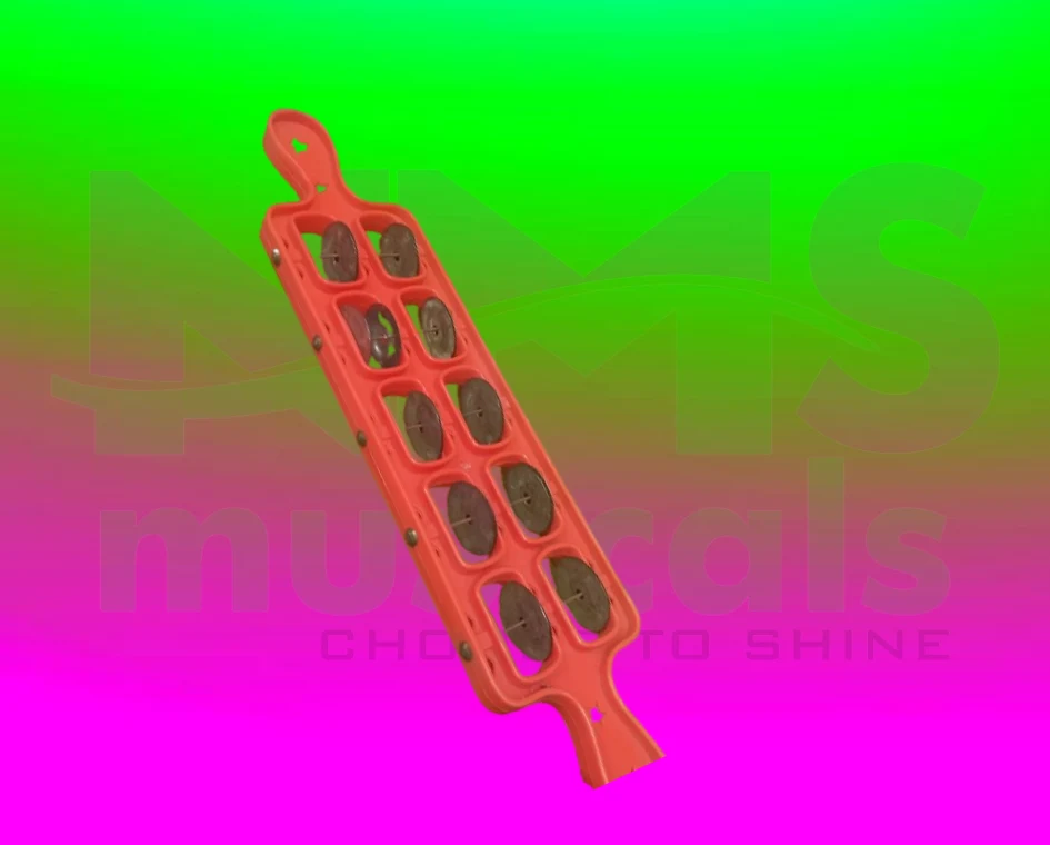 - Fiber Jheeka 5 Lines – Red Colour is a traditional Indian hand percussion instrument crafted from lightweight fiber material, featuring multiple rows of jingles that produce a crisp, rhythmic sound when shaken.