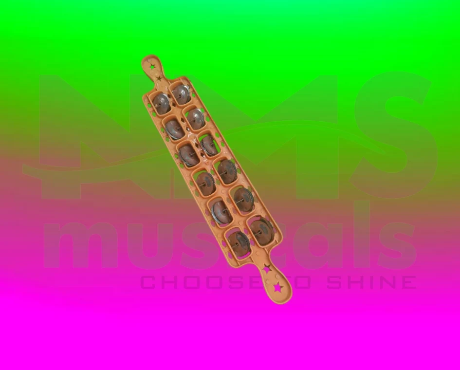 - Fiber Jheeka 6 Lines – Orange Colour is a traditional Indian hand percussion instrument crafted from lightweight fiber material, featuring multiple rows of jingles that produce a crisp, rhythmic sound when shaken.
