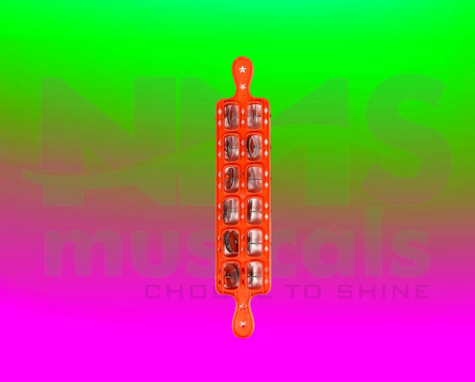 - Fiber Jheeka 6 Lines – Red Colour is a traditional Indian hand percussion instrument crafted from lightweight fiber material, featuring multiple rows of jingles that produce a crisp, rhythmic sound when shaken.