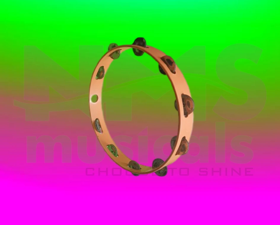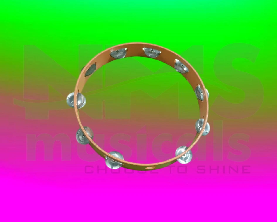 Tambourine 12-inch percussion instrument without head, featuring jingles for vibrant, rhythmic sound.