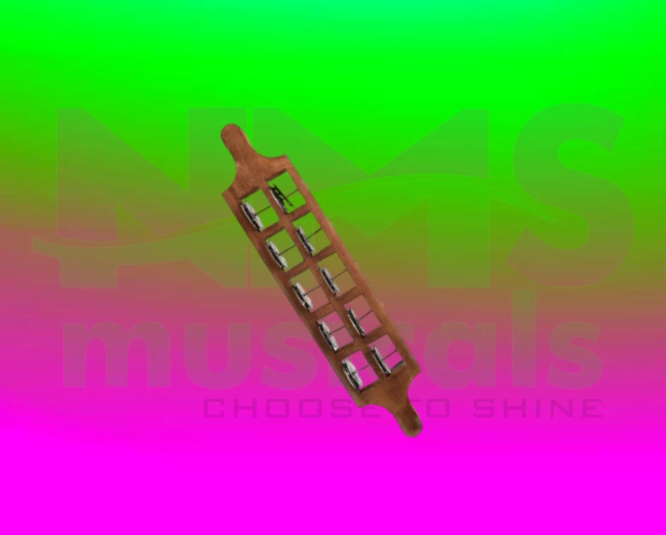 - It is made of two wooden frames that are connected by a series of jingles. When the frames are shaken, the jingles strike each other and produce a pleasant sound.