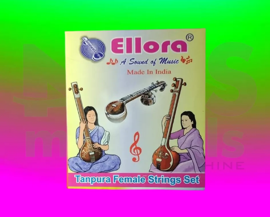 - Ellora Tanpura Female Strings Set is designed for Indian classical tanpuras, offering rich resonance and long sustain.